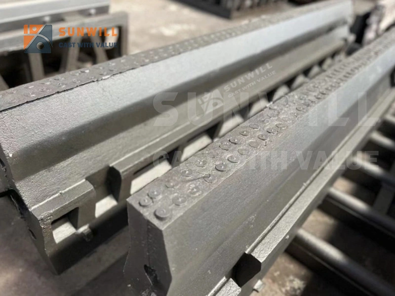 板锤是HSI反击式破碎机中最关键的磨损部件,用于将大块进料破碎成更小的颗粒。板锤垂直安装在转子上,并与转子一起高速旋转。从反击式破碎机的开放式进料口送入的物料被板锤击向安装在裙板上的反击板,然后反弹回来。在此过程中,物料被破碎并减小尺寸,然后从反击式破碎机的出口排出。由于这种工作原理,板锤在破碎过程中承受着巨大的冲击力和严重的磨损。因此,为反击式破碎机选择合适可靠的板锤至关重要。优质的板锤能够尽可能长时间地保持使用寿命,并且不会断裂。