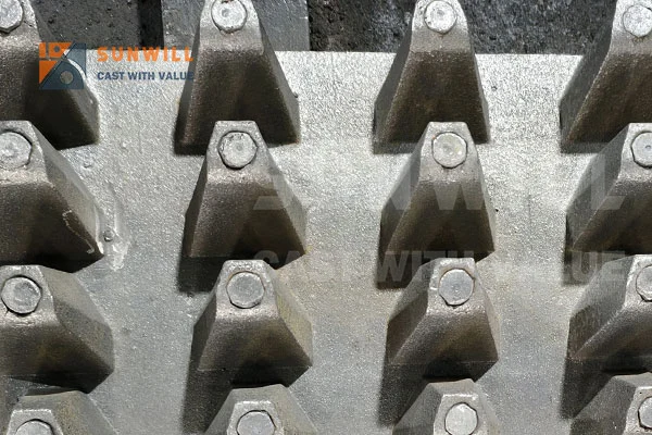 齿辊破碎机是一种用于破碎中低硬度脆性物料的机械设备,广泛应用于煤炭、矿山、冶金、砂石采石场及选煤厂等行业。其核心功能是通过齿辊的对向旋转产生剪切力,对煤炭、焦炭、煤矸石等物料进行分裂破碎,高效完成物料破碎作业。 我们生产的齿辊破碎机齿板衬板,在选煤厂和采石场中广受认可;其中,镶嵌碳化钛(Tic)的齿板,可大幅延长齿辊破碎机的使用寿命,为客户降低设备维护成本。
